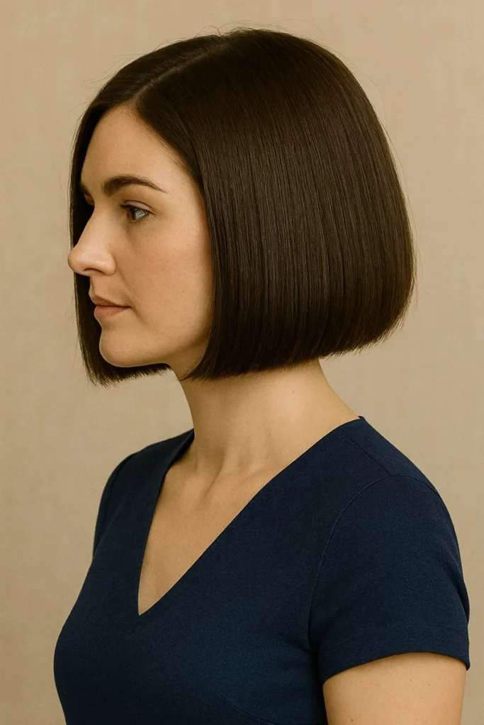 A blunt bob with clean edges creates a structured and stylish appearance. This classy hairstyle works especially well for professional settings and daily wear.