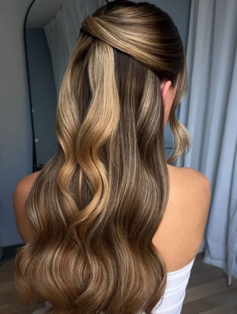 - Half-up hairstyles with soft waves