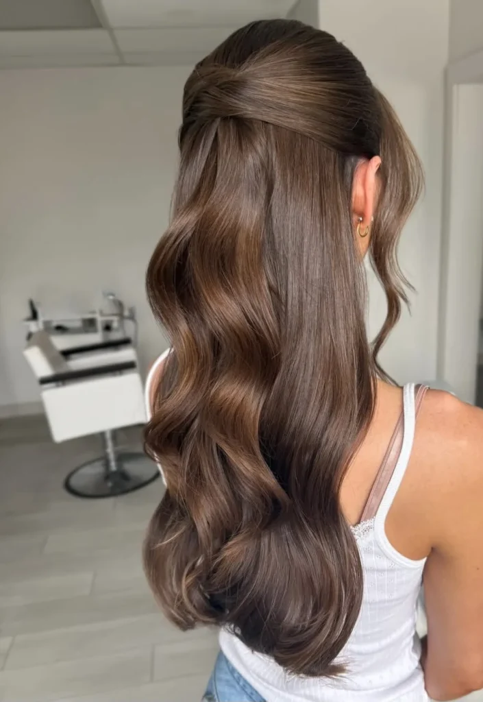 - Half-up, half-down hairstyle Balances elegance and comfort