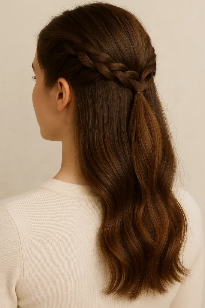 Today’s version of the half-up hairstyle is modern, customizable, and perfect for minimal, feminine, and natural-beauty trends dominating social media.